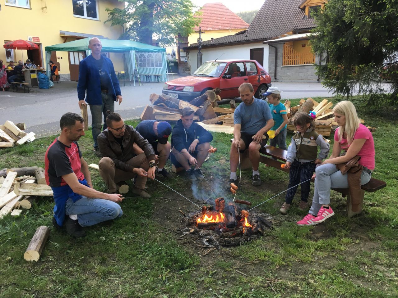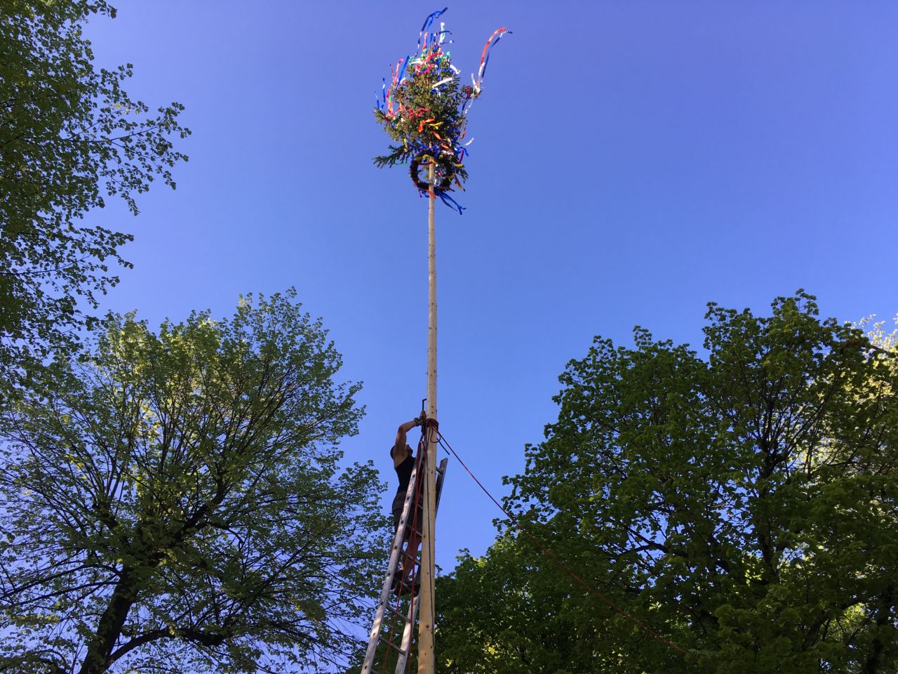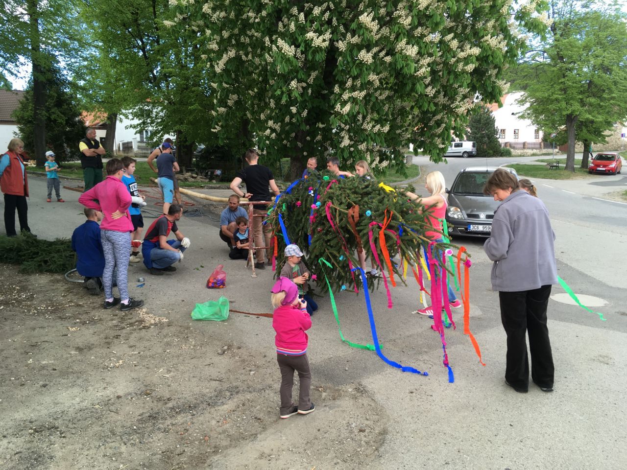 Stavba májky Jako každý rok proběhla 30.4.2018 na návsi stavba májky.